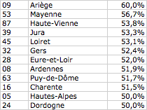 Pardon mais la palme revient plutôt à la Dordogne et aux Hautes Alpes. Le reste est soit mysoginie, soit misandrie. Mais pas la parité qui suppose égalité. Attention aux mots...