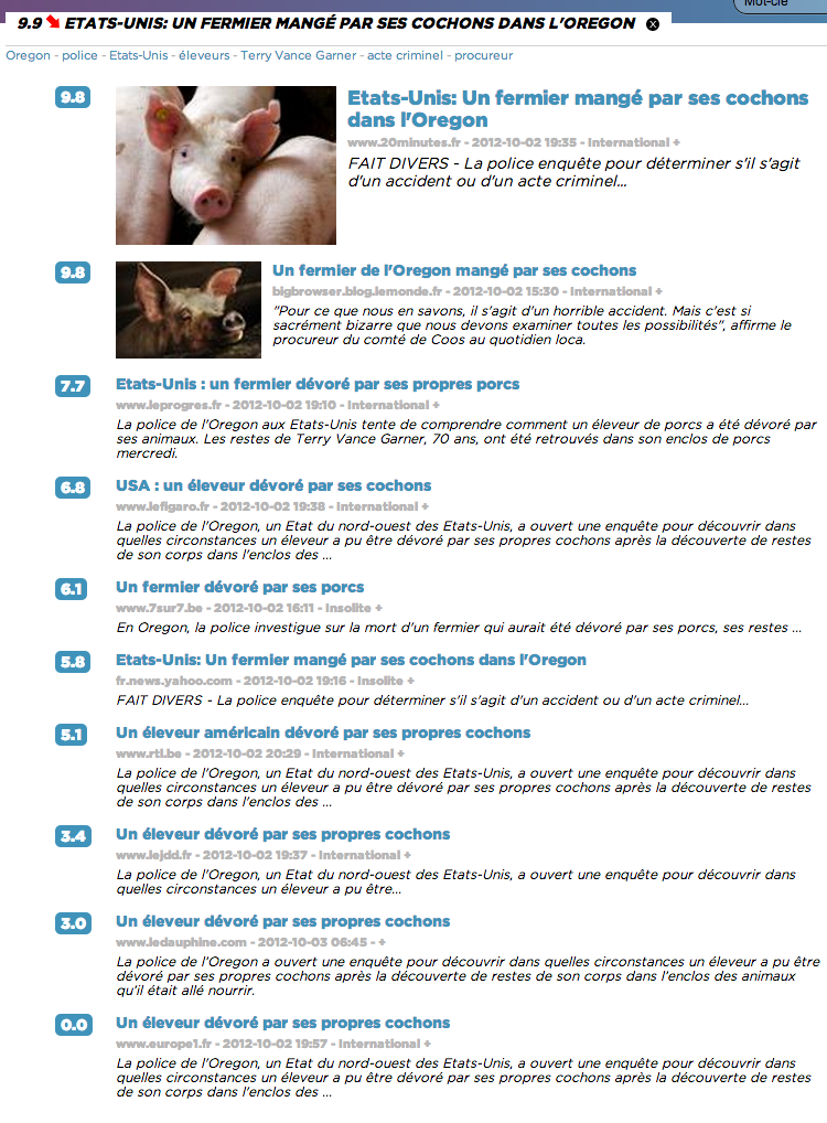 Si, il y a un article sur le blog du Monde "Big browser" toujours à la pointe pour les infos décalées : http://bigbrowser.blog.lemonde.fr/2012/10/02/delicatessen-un-fermier-de-loregon-mange-par-ses-cochons/#xtor=RSS-3208